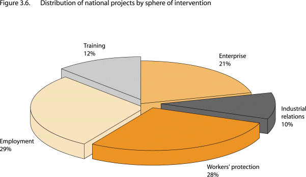 During the period under review, the ILO Bureau for Workers' Activities has implemented a total of 40 technical cooperation projects which have benefited trade union organizations in all five subregions of Africa. These projects have focused, inter alia, on: training in general workers' education; leadership training; and specialized training in industrial relations issues such as occuptional safety and health, the environment and collective bargaining. Ten projects are still ongoing, with some in the second and third phases of implementation (box 4.2).