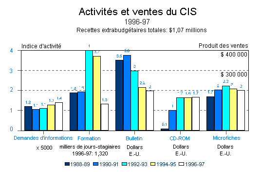 31. Dans toute l'industrie de l'information, il y a une tendance prolongée à la baisse de l'utilisation des serveurs traditionnels qui facturent à l'heure ou au mot les informations qu'ils fournissent. Cela est dû au développement continu des disques CD-ROM et au volume croissant d'informations que l'on peut obtenir gratuitement sur Internet. Les recettes fournies au CIS par ses serveurs ont connu le même déclin, et à la fin de 1997 un centre serveur s'était retiré du marché et un deuxième avait abandonné la base de données du CIS. Pour profiter de la tendance du recours à Internet, nos centres serveurs Questel et Orbit, maintenant dirigés par la même compagnie, offrent un accès à Internet aux abonnés qui ont un mot de passe pour accéder à leur service traditionnel en ligne, et SilverPlatter Information a établi, à la fin de 1997, un accès à la base de données du CIS par le World Wide Web au même tarif d'abonnement que pour un disque CD-ROM. Il est encore trop tôt pour juger l'impact de ces innovations.
