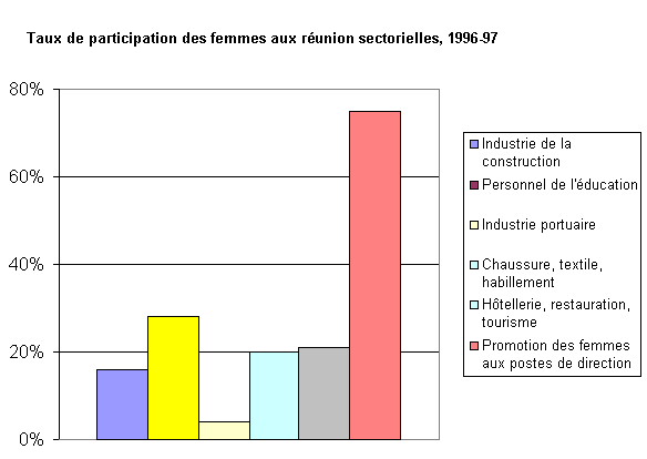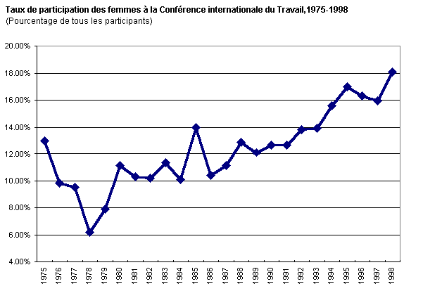 10. Une crèche dans les locaux du BIT permettra au Bureau d'offrir des services de garderie pour un certain nombre d'enfants de délégués aux réunions et conférences de l'OIT, supprimant ainsi l'un des obstacles à une plus forte participation des femmes à ces réunions. Comme on peut le voir dans les deux graphiques qui figurent dans l'annexe 1, la participation des femmes aux réunions et conférences de l'OIT reste très faible.