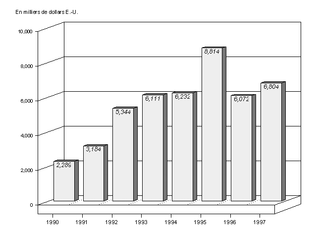 7. Il est à noter par ailleurs que, dans le cadre de l'aide fournie aux pays en développement par les pays appartenant au Comité d'aide au développement (CAD), la part des crédits affectés à l'assistance technique a fortement augmenté entre 1994 et 1996 (de 12,9 à 14,1 milliards de dollars). En outre, la part des contributions aux organismes multilatéraux (hors banques et Communauté européenne) est de 6,3 milliards de dollars, soit un quasi statu quo par rapport à 1994 et 1995.