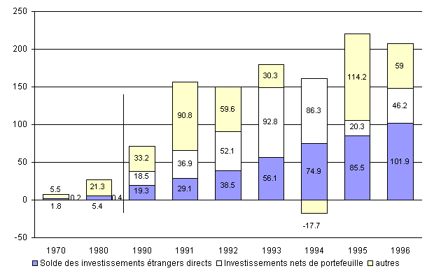 (en milliards de dollars E.-U., 1970-1996) |