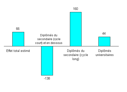 Figure 9. République de Corée: Incidence estimée du commerce sur l'emploi par niveau d'éducation |