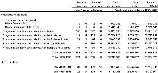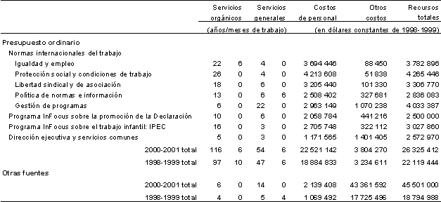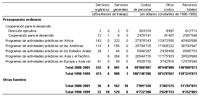 13. Conjuntamente, los cuadros 1, 2, 3 y 4 dan una visión completa de los presupuestos estratégico y operativo para 2000-2001.